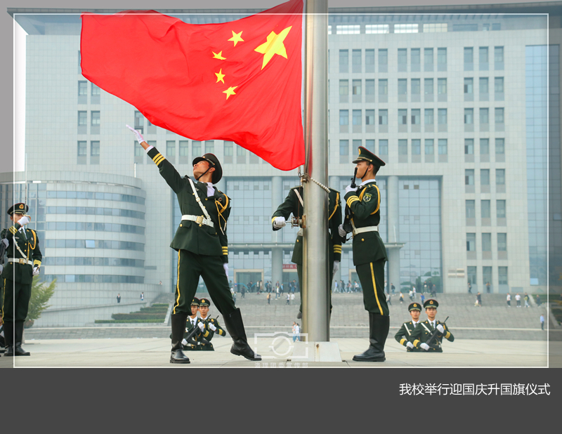 在王城校区鼎元广场,沐浴着初升的阳光,在全体师生的注目下,国旗护卫队员们护送鲜艳的五星红旗进场。庄严的《中华人民共和国国歌》奏响,鲜艳的五星红旗冉冉升起,迎风飘扬,所有师生面向国旗行注目礼,目光中饱含着对祖国无限的热爱,心头洋溢着满满的骄傲与自豪。