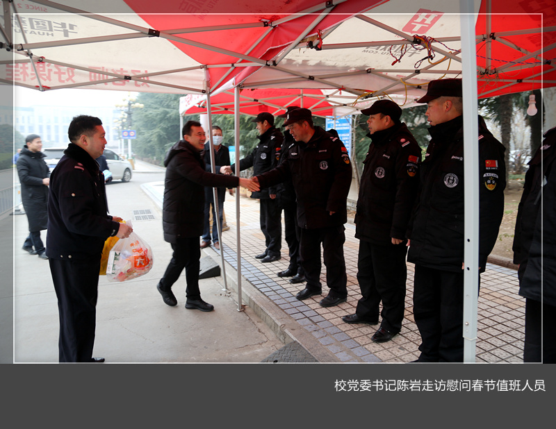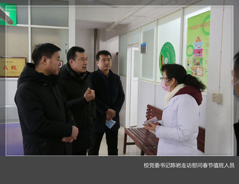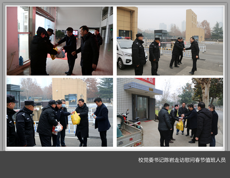 1月24日下午,农历大年三十,校党委书记陈岩一行走访慰问春节期间值班人员,向他们致以节日的问候和新春的祝福。校党政办、宣传部、保卫处、后勤管理处相关部门负责人参加慰问。