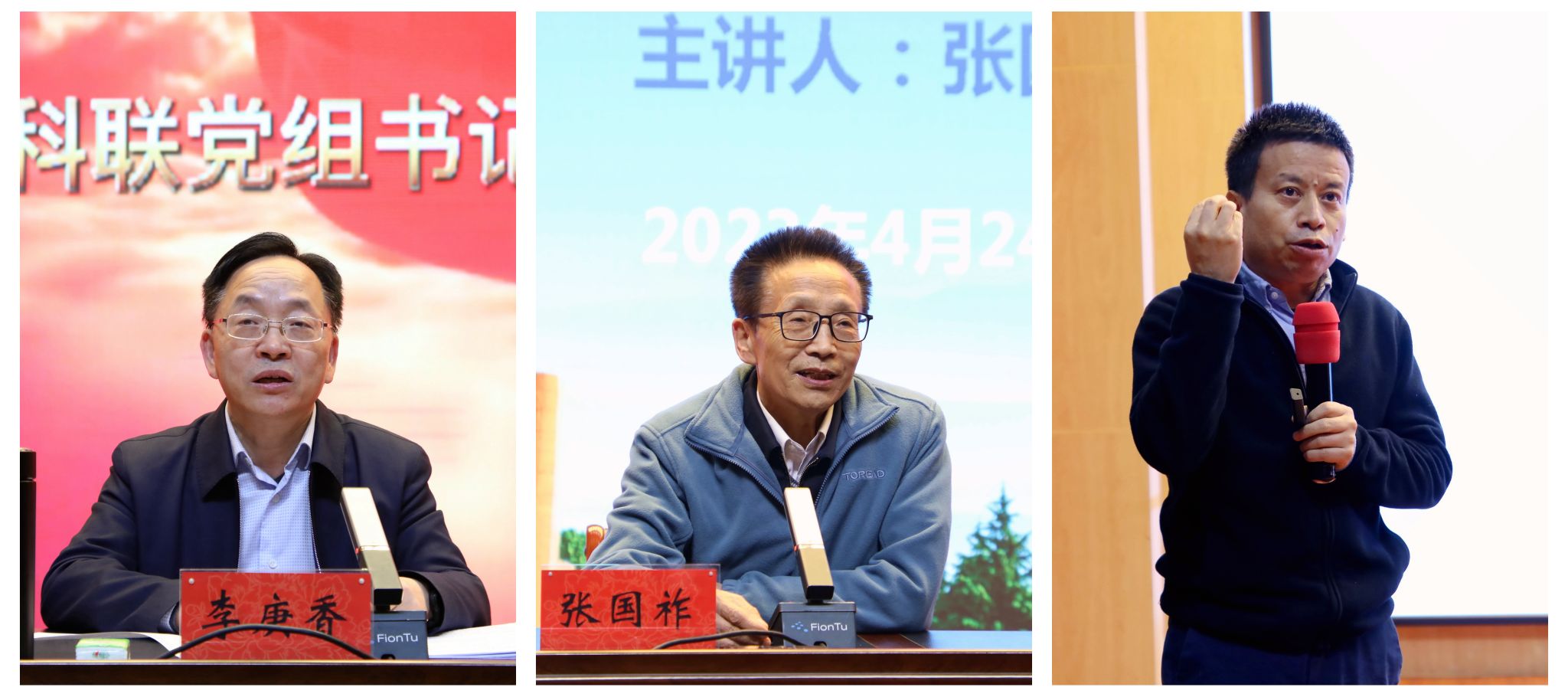 河南省社科联党组书记、主席李庚香教授,中宣部理论局原副局长张国祚教授,国家教育考试指导委员会专家组成员陈志文(右一)分别作专题报告