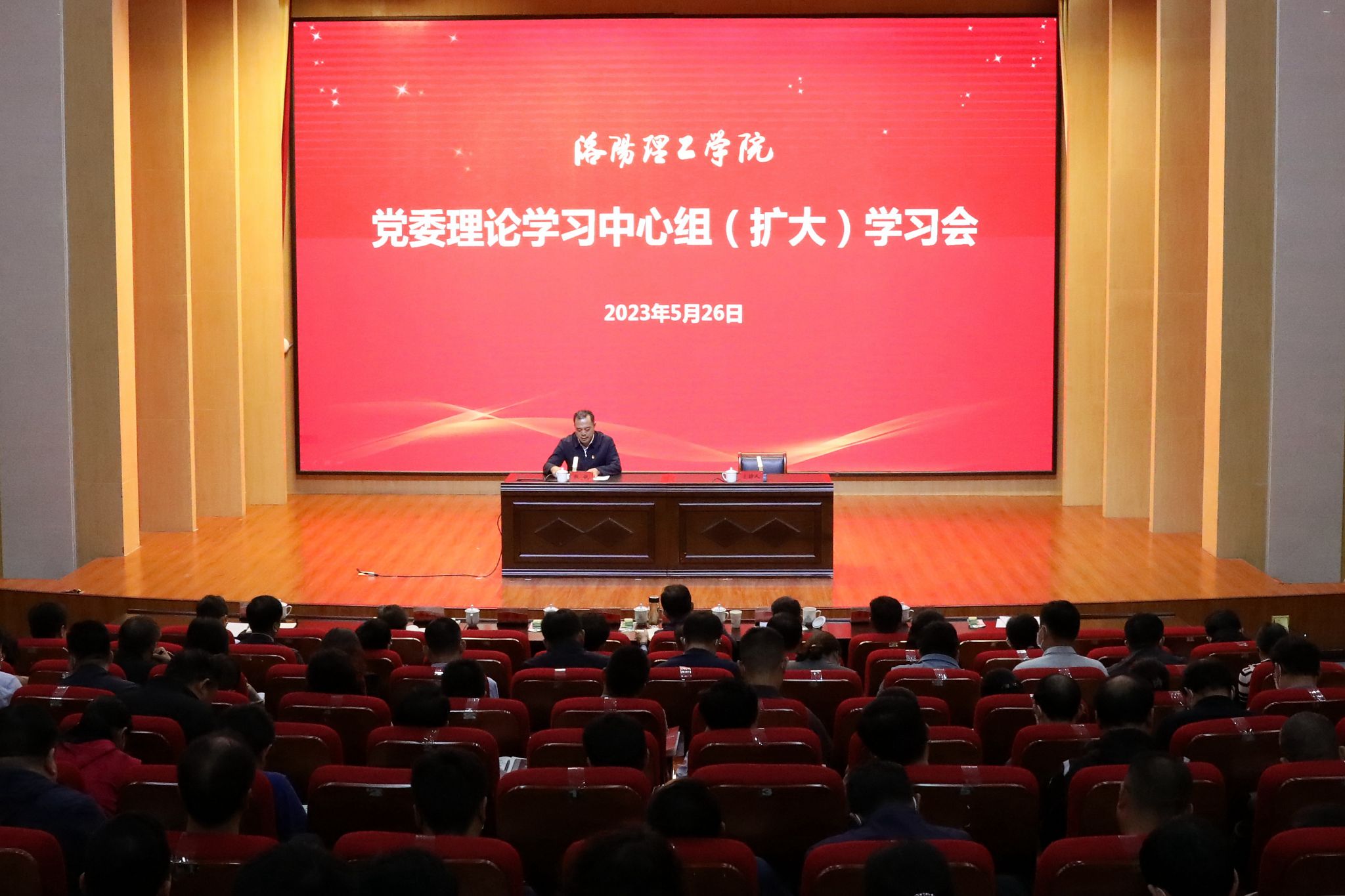 在王城校区图书信息中心报告厅举行党委理论学习中心组(扩大)学习会,校长张锐讲授专题党课。校领导陈岩、曾涛、黄志全、韩洪涛、王新武出席会议,全校副处级以上干部参加会议。会议由副校长王新武主持。