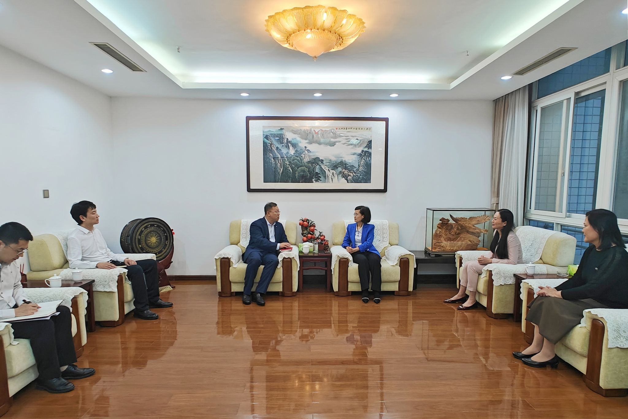 开展合作交流。校长丁梧秀、副校长马珺出席交流会谈,财务处负责人参加会谈。双方就深化银校合作、拓展金融服务、共建产教融合等领域进行了深度交流。