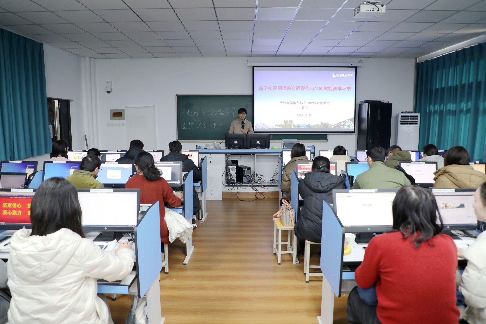 “智慧+”教师数字素养提升系列培训工作坊在王城校区基础实验楼BN407举行,此次工作坊以“基于知识图谱的实际操作与AIGC赋能教学环节”为主题,邀请武汉大学课程思政中心副主任唐飞副教授现场讲授指导,共有来自校内15个教学单位的69名教师参加培训。