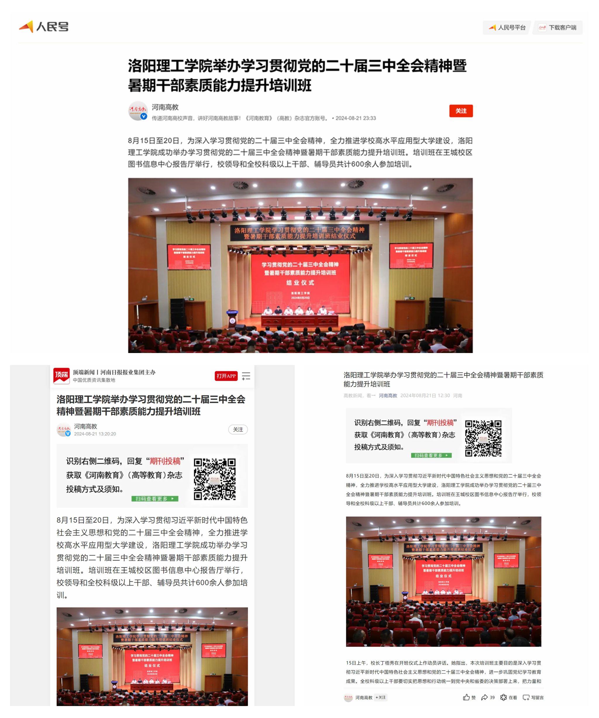 成功举办学习贯彻党的二十届三中全会精神暨暑期干部素质能力提升培训班。培训班在王城校区图书信息中心报告厅举行,校领导和全校科级以上干部、辅导员共计600余人参加培训。