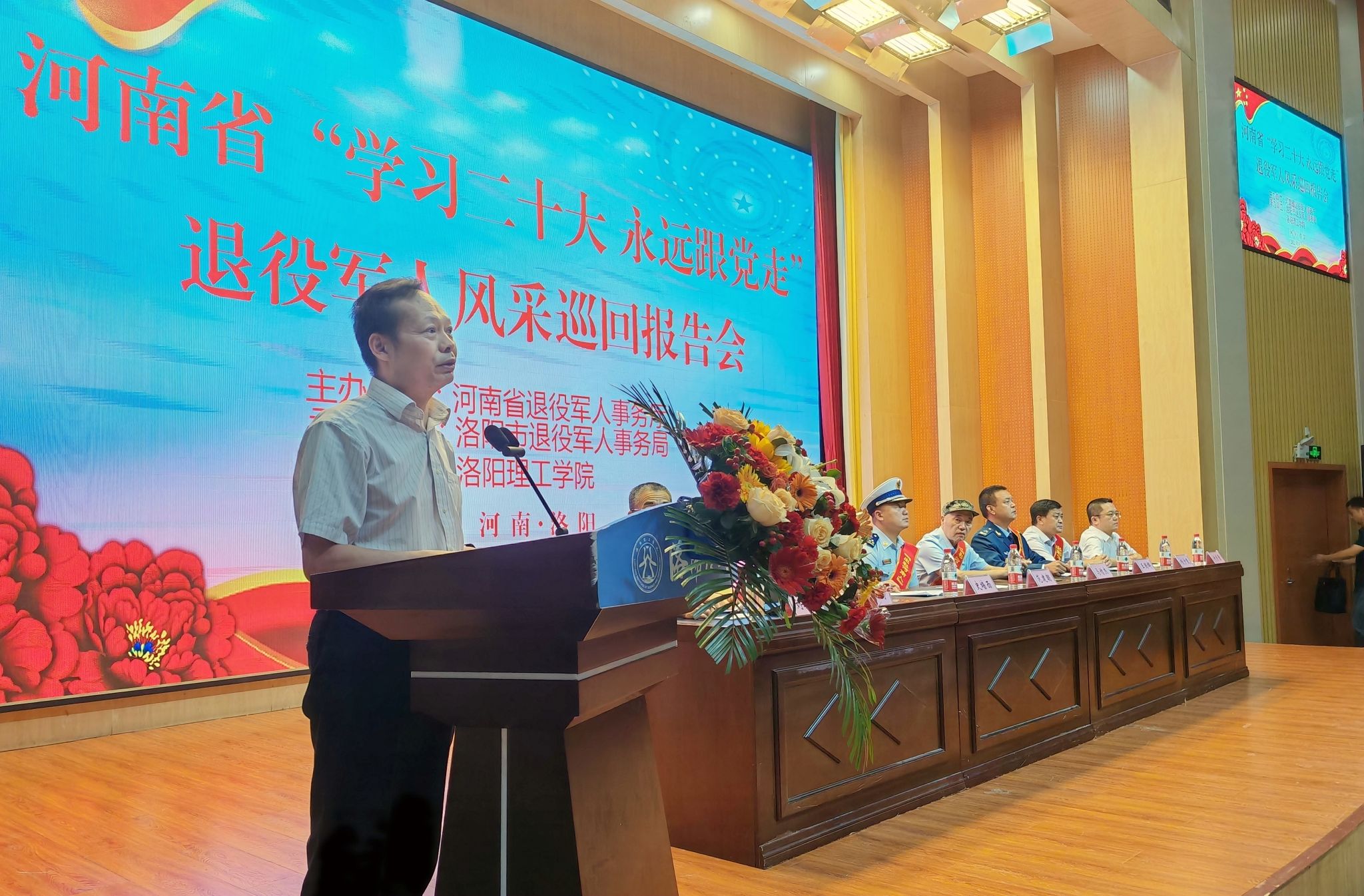 承办,洛阳市退役军人事务系统党员干部职工、退役军人代表、老兵宣讲团成员、高校学生、社会群众等700余人听取报告。
