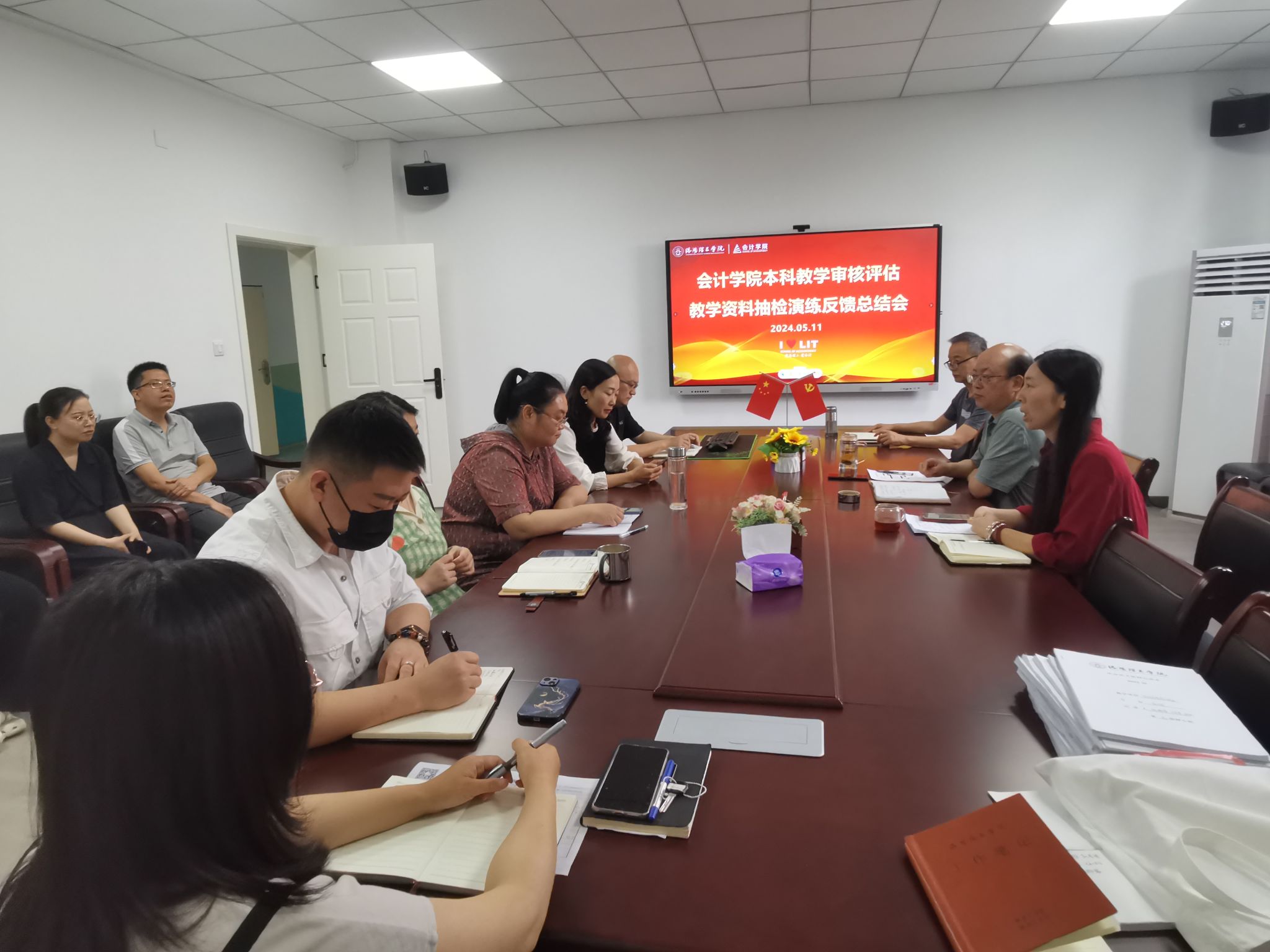 院长马腾、副院长吕玉辉、副院长蔡洁以及教学秘书、各系主任、副主任、教务员、资料组的全体教师参加了反馈总结会。