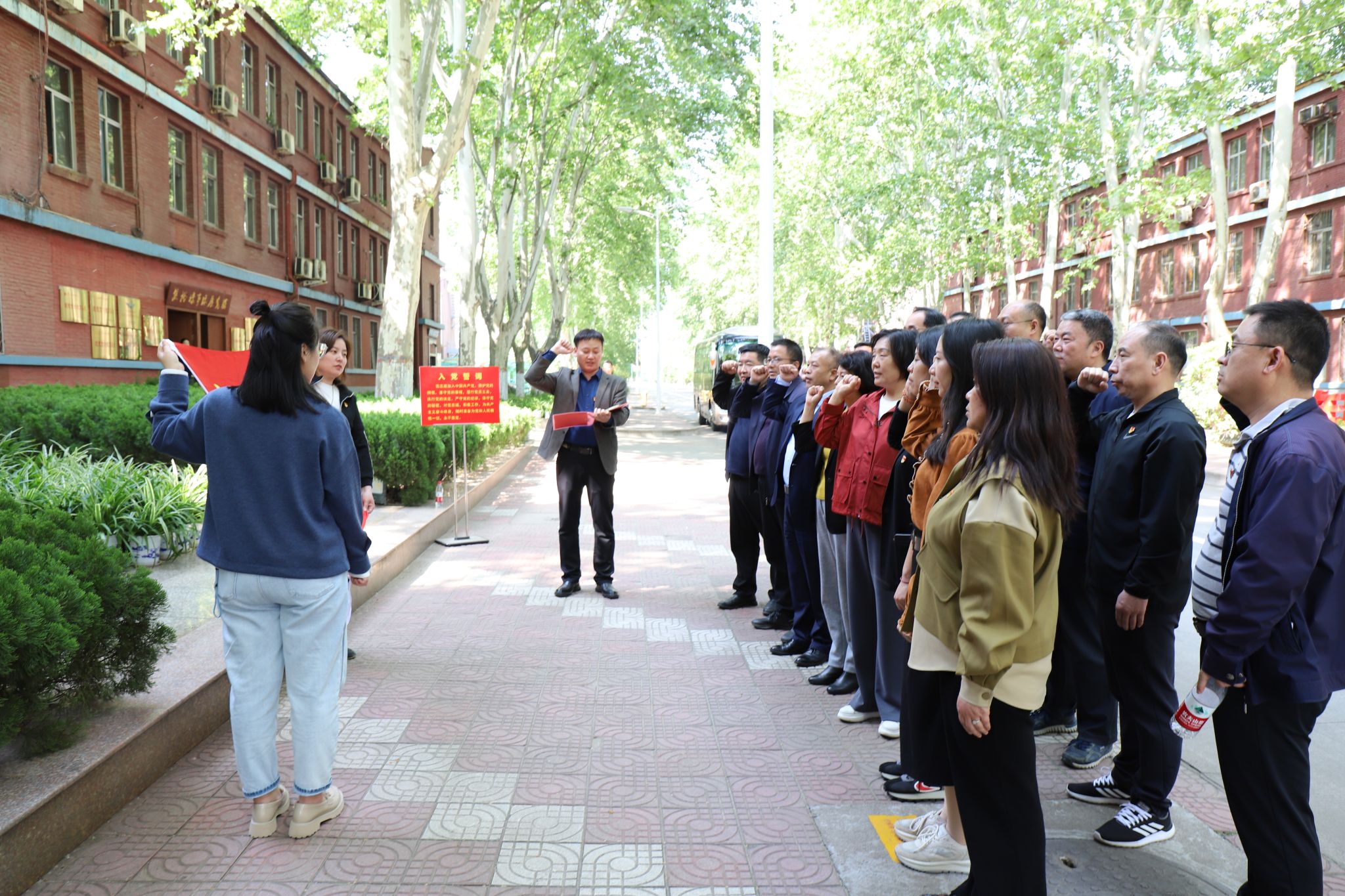 为推动学习贯彻习近平新时代中国特色社会主义思想主题教育,激发广大党员干部爱党爱国热情,提升党支部组织力、凝聚力、战斗力。4月27日下午,机关党委第十、十三、十六党支部开展“学习公仆精神,践行初心使命”体验学习主题党日活动,先后到焦裕禄纪念馆等教育基地参观学习,面向党旗庄严宣誓,重温入党誓词。机关党委第十党支部书记人事处处长贾金玲、第十三党支部书记国资处处长邓志中、第十六党支部书记基建处处长李玉林带领各支部党员干部共20余人参加了活动,机关党委孟庆湖书记和孟原老师受邀参加了教育活动。