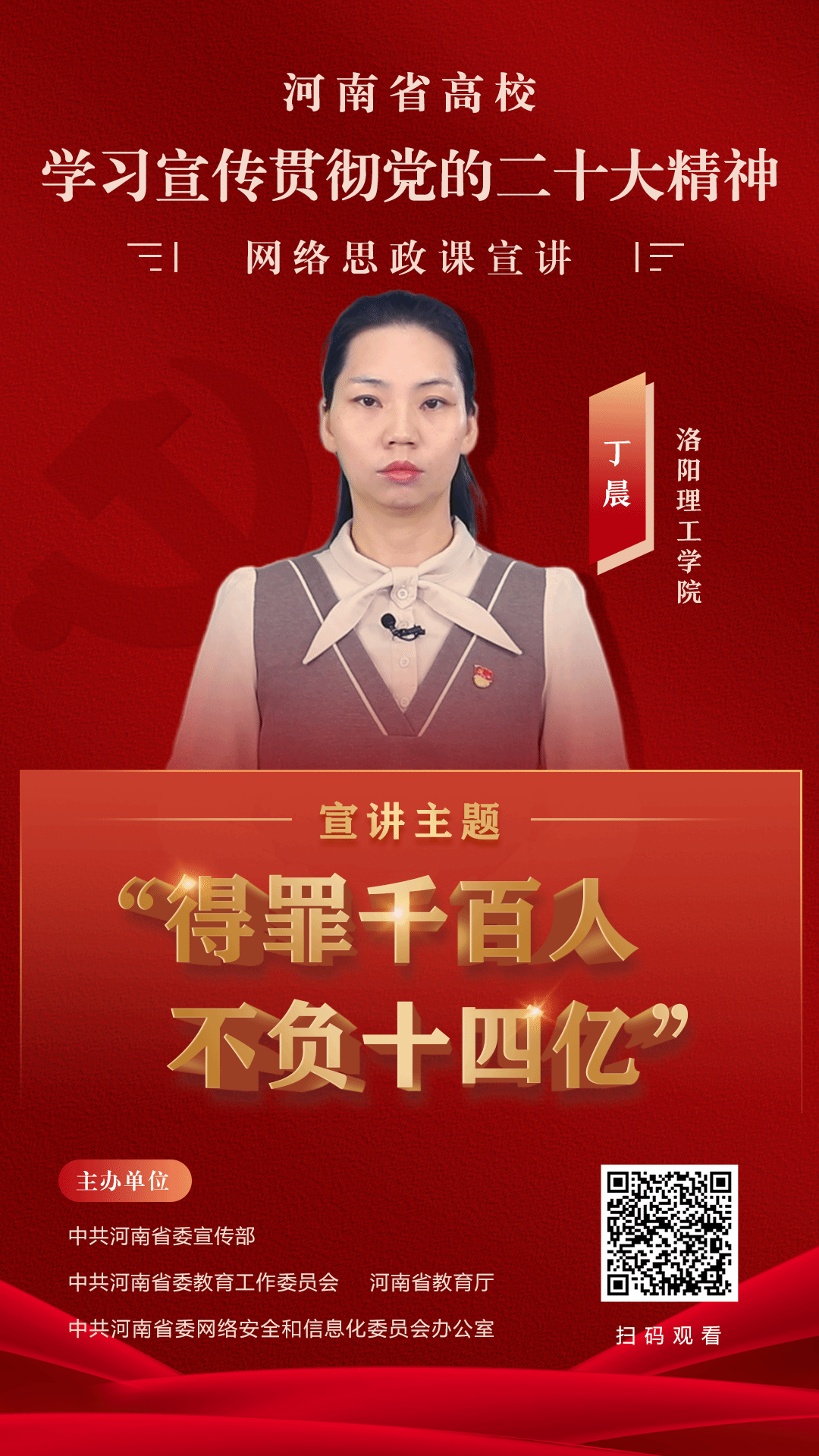 党委副书记丁晨宣讲作品《得罪千百人,不负十四亿》入选教育部第九届高校廉洁教育系列活动“一校一金句”网络微课。