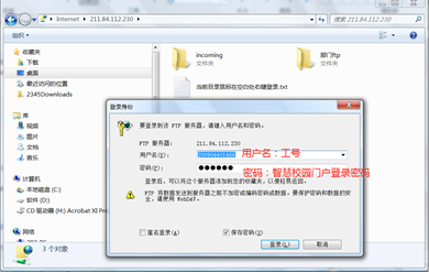 主页,点击“公共服务”/“办公FTP”即可打开登录页面