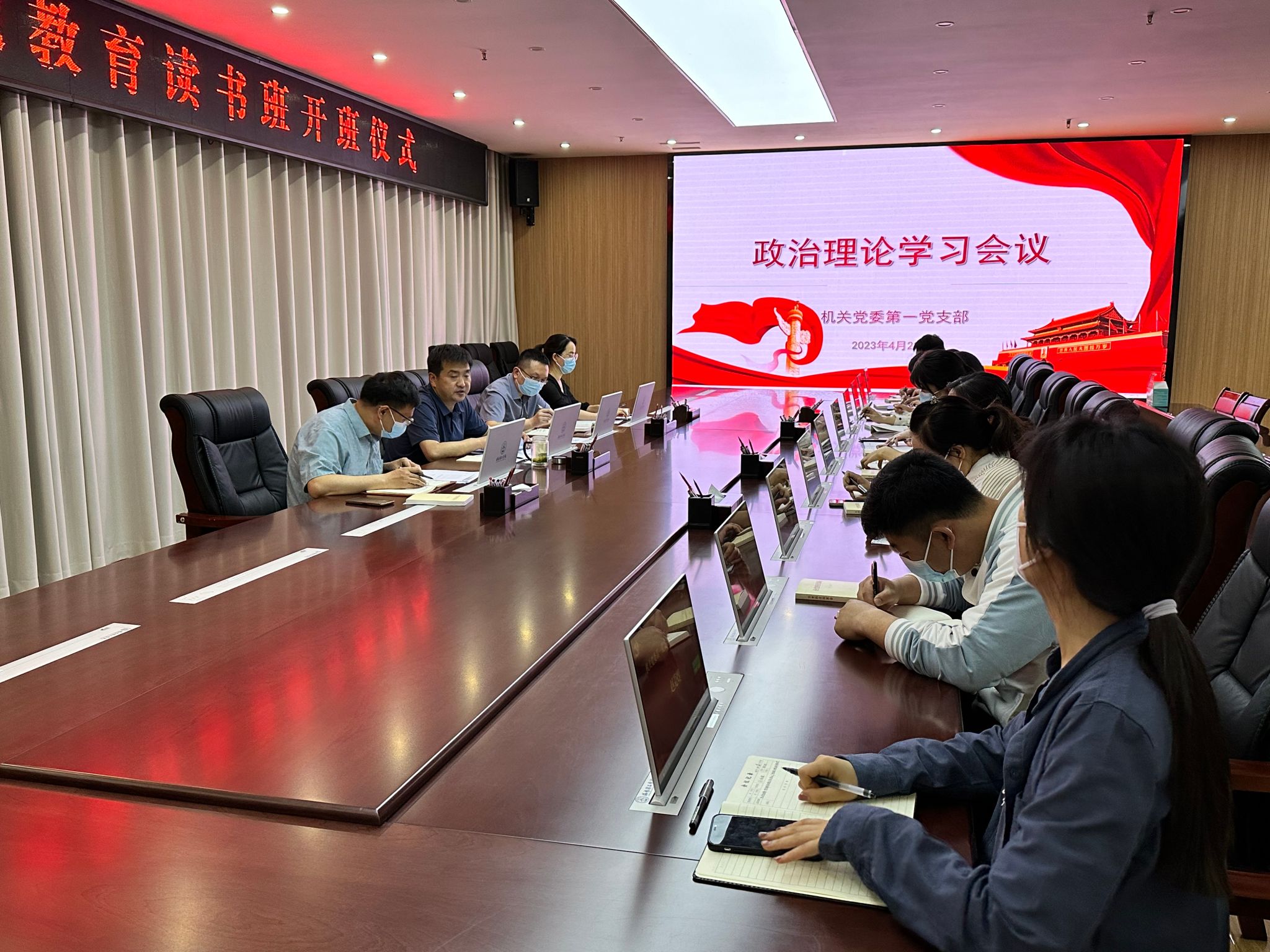 2023年4月28日下午,机关党委第一党支部在办公楼116会议室召开政治理论学习会议。徐光秀同志主持会议。