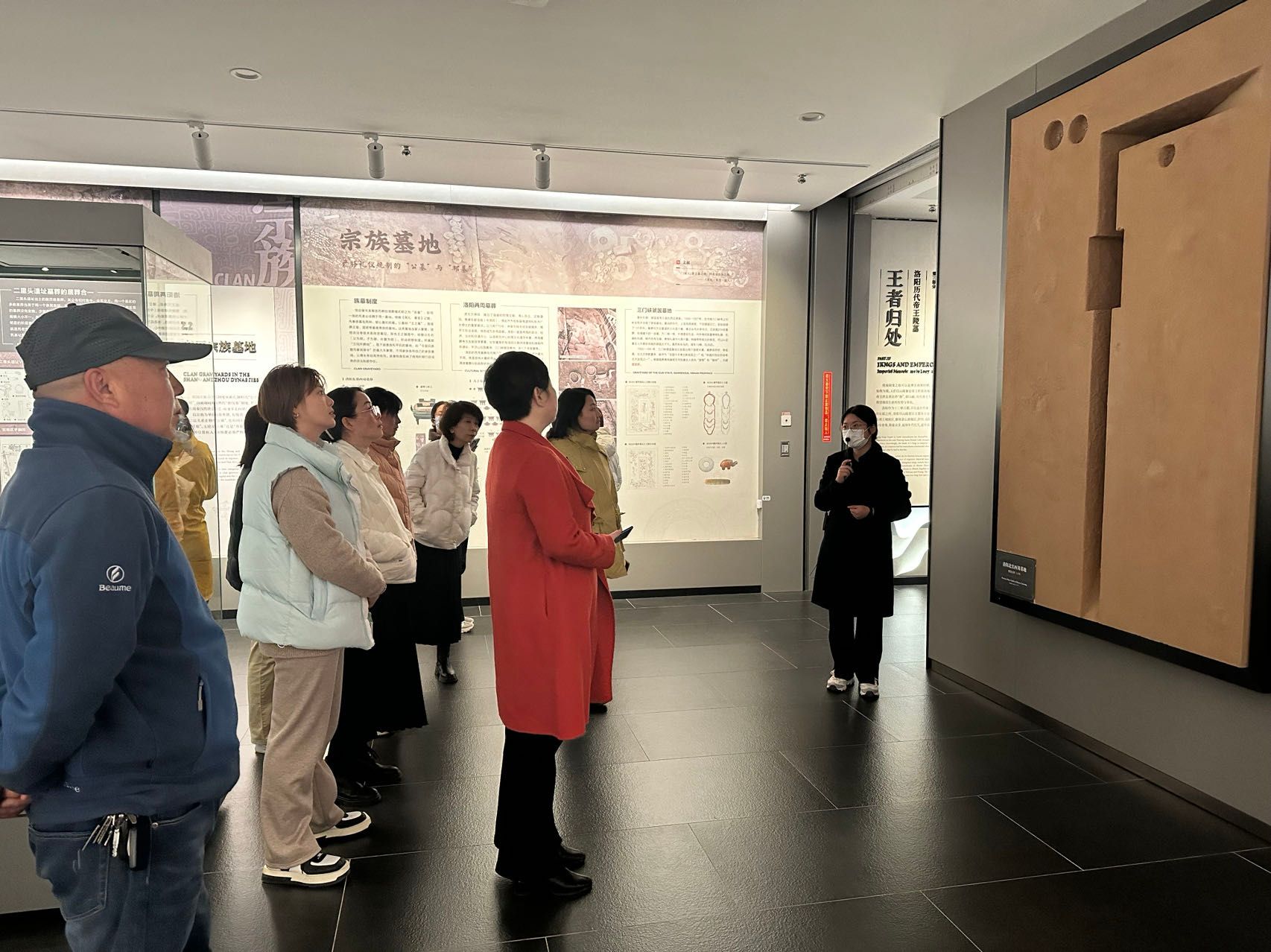 洛阳邙山古墓年代之久、类型及数量之多全球居冠,古墓博物馆就位于洛阳北邙山上,是世界上第一座古墓博物馆。展馆共分历代典型墓葬、北魏帝王陵、壁画馆三大展区。在讲解员的引导下,参观了洛阳古墓博物馆基本陈列“此岸彼岸——古代墓葬文化展”“河洛遗冢——洛阳典型墓葬陈列”“地府千秋——河南古墓壁画大观”“砖画青史——宋金砖雕展”“洛阳北魏帝王陵展”以及“壁画修复中心”等。在参观中,全面了解了洛阳墓葬的历史特点,更加清晰地了解到邙山陵墓群的分布、洛阳古代墓葬的丧葬体系、河南古代壁画的艺术韵味。