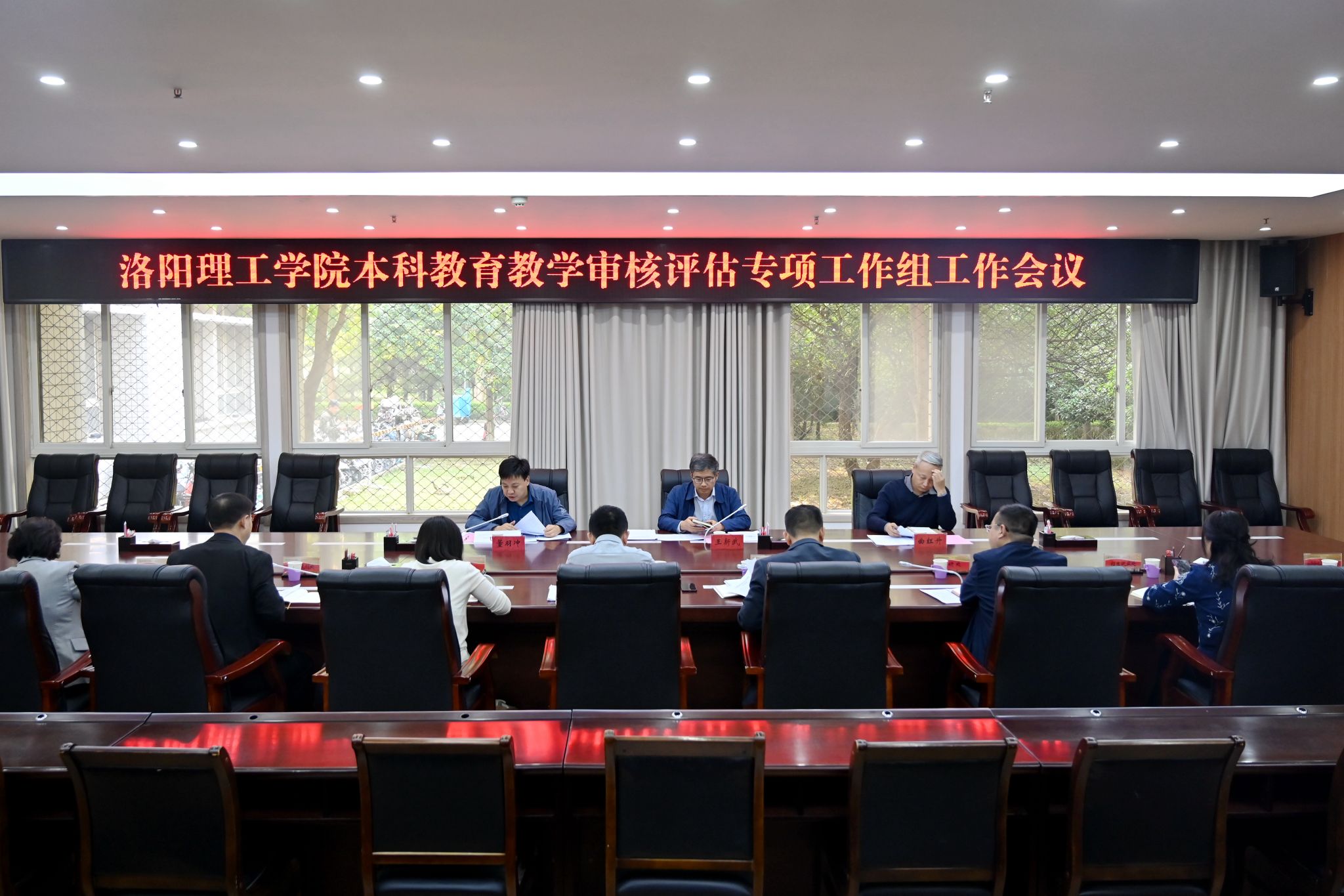 在王城校区办公楼116会议室召开本科教育教学审核评估专项工作组工作会议。副校长王新武主持会议并讲话, “办学方向与本科地位”、“培养过程”、“教学资源与利用”、“教师队伍”、“学生发展”、“质量保障”、“教学成效”、“服务保障”“评估督查”等9个专项工作组副组长参加会议。