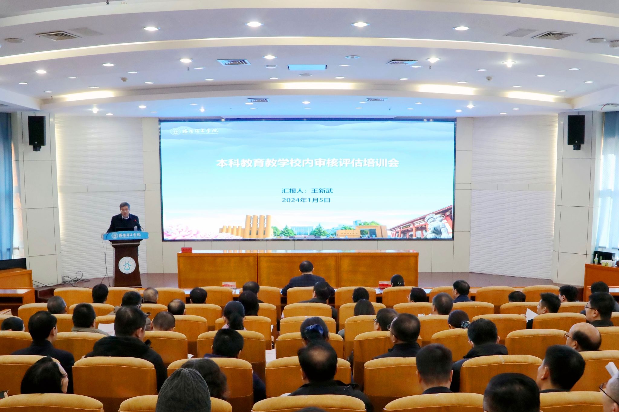1月5日上午,美高梅娱乐场 在王城校区办公楼二楼报告厅召开本科教育教美高梅娱乐场 内审核评估培训会。校领导刘楠、马珺、王新武出席会议,各部门(含教学单位)中层正职、校内自评各评估专家组成员等150余人参加培训。