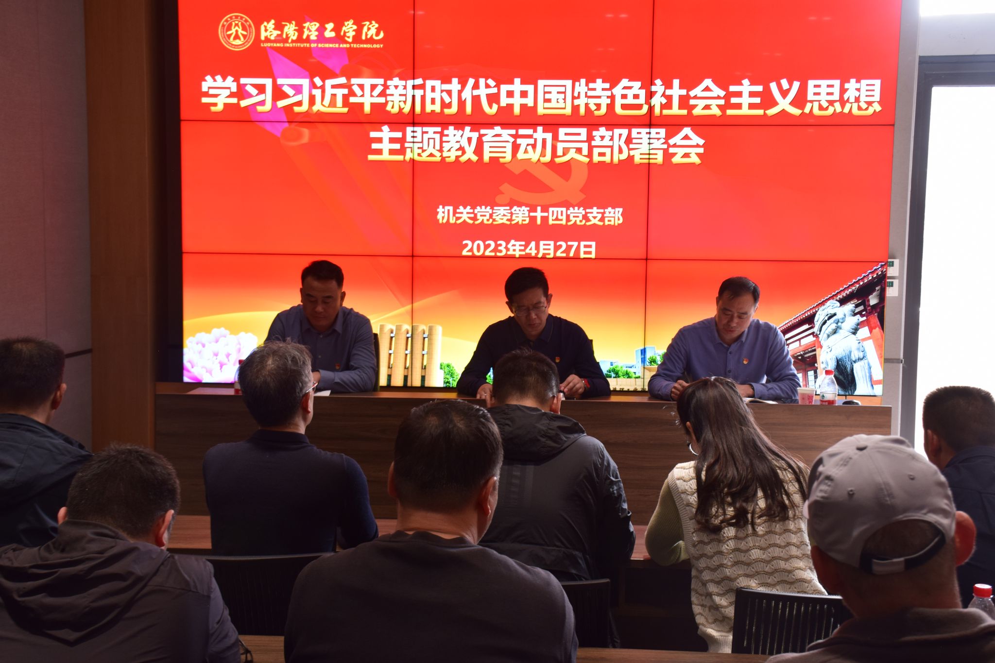 4月27日下午,机关党委第十四党支部在国宝社区会议室召开学习贯彻习近平新时代中国特色社会主义思想主题教育动员部署会,按照校党委和机关党委部署要求,对支部深入开展主题教育进行动员和部署。支部全体党员参加了会议。