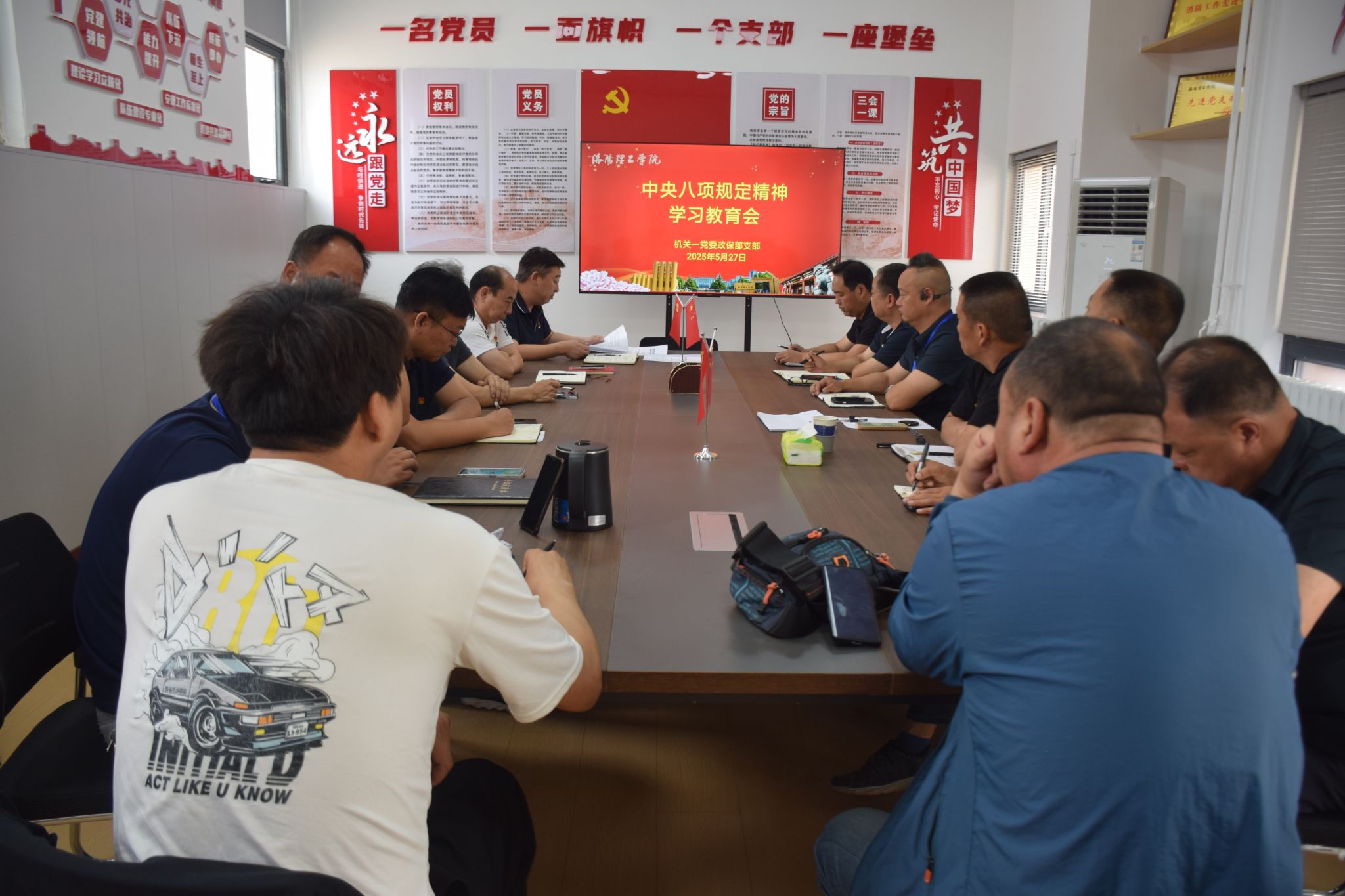 5月27日上午,政保部党支部召开中央八项规定精神学习教育会,围绕中央八项规定精神开展理论学习、问题查摆及整改部署。支部全体在岗党员参加会议,会议由支部书记赵燕昌主持。