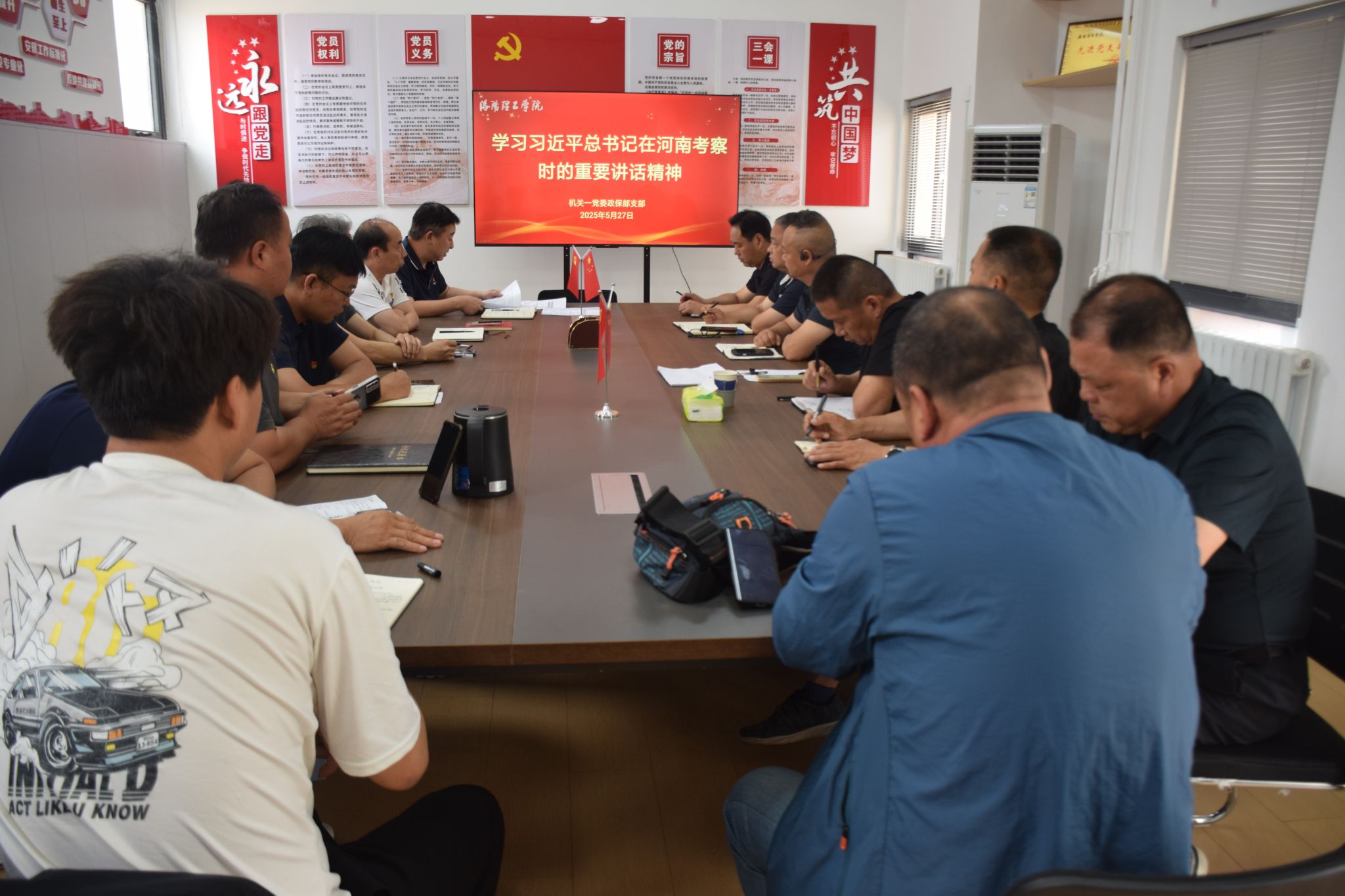 5月27日上午,政保部党支部召开全体党员大会,传达学习习近平总书记在河南考察时的重要讲话精神。会议由支部书记赵燕昌主持。