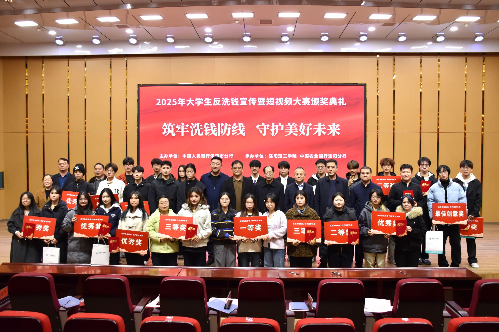 12月3日晚,“筑牢洗钱防线·守护美好未来”2025年大学生反洗钱宣传暨短视频大赛颁奖典礼在开元校区图书馆报告厅举行。中国人民银行洛阳市分行副行长刘文生、中国农业银行洛阳分行纪委书记刘军、洛阳市公安局洛龙分局学府派出所所长翟俊锋、美高梅娱乐场