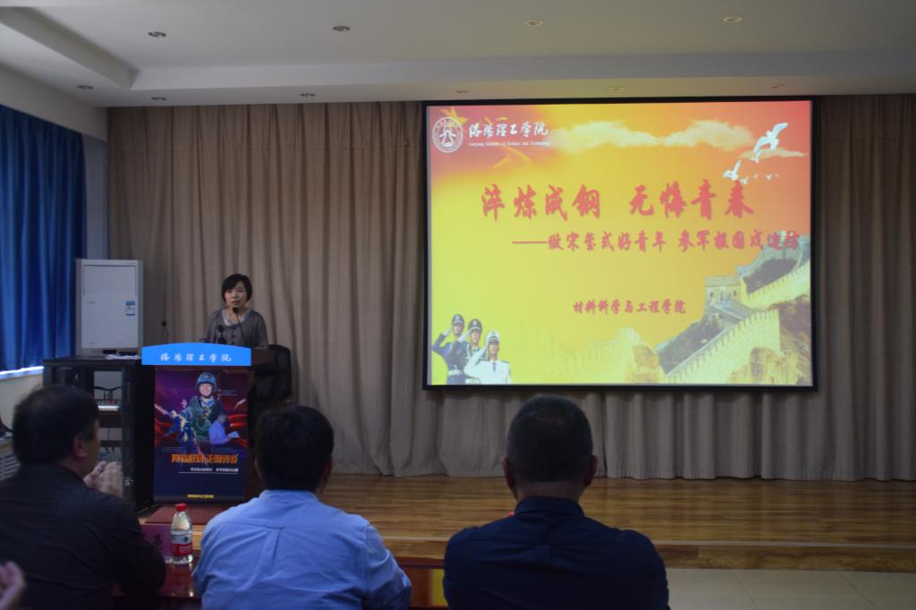 5月10日下午,材料美高梅娱乐场 在公共教学楼道德讲堂开展了以“淬炼成钢,无悔青春”为主题的征兵宣传动员活动。党委学工部、武装部部长张宽亮、副部长丁国强、材料美高梅娱乐场 党委书记吴武伟、党委副书记张慧泉、全体辅导员老师以及近百名材料学子参加此次活动。宣传动员大会由学工办主任于燕枝老师主持。