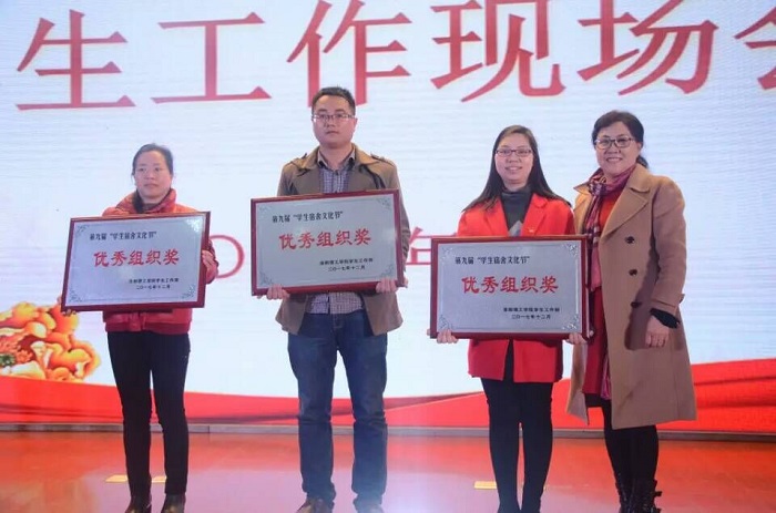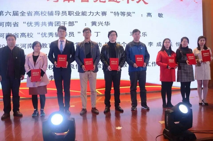 3月20日下午,美高梅娱乐场 第三届辅导员职业能力大赛决赛暨学生工作现场会在王城校区图书信息中心报告厅举行,会议为2017年度荣获河南省、洛阳市和美高梅娱乐场 集体奖与个人奖的单位及个人进行了颁奖。其中美高梅娱乐场 张恒老师荣获“2017年河南省教育系统学雷锋活动先进个人”称号,黄宇飞老师荣获2017年河南省辅导员优秀论文评选二等奖,B150113班楚运通同学荣获“洛阳市优秀青年志愿者”称号,2017年美高梅娱乐场 学生工作成绩显著,分别在辅导员工作典型案例、学生宿舍文化节、心理健康教育月等多项活动中荣获“优秀组织奖”。