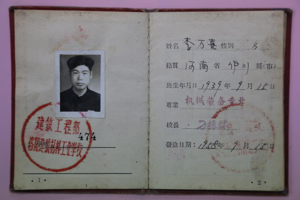 洛阳建筑材料工业美高梅娱乐场 58级学生证