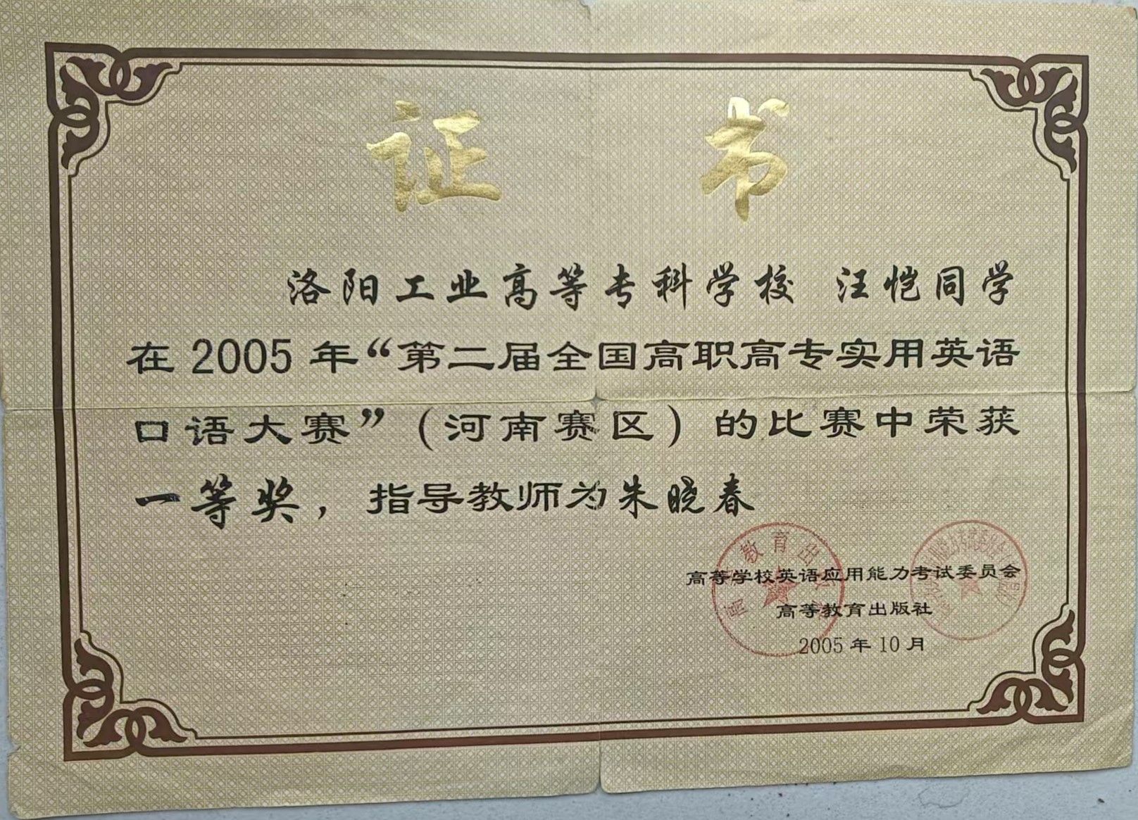 2005 洛阳工业高等专科美高梅娱乐场 比赛证书