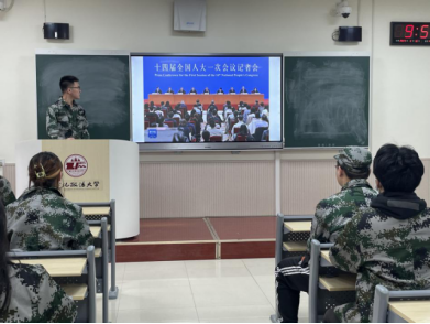 正值军训教育时期,学生第一党支部组织全体入党积极分子身着军训服收看两会录像、收听两会新闻,以激励同学们团结进取、奋发自强,激发爱国情怀,强化使命担当,牢固青年时代精神。