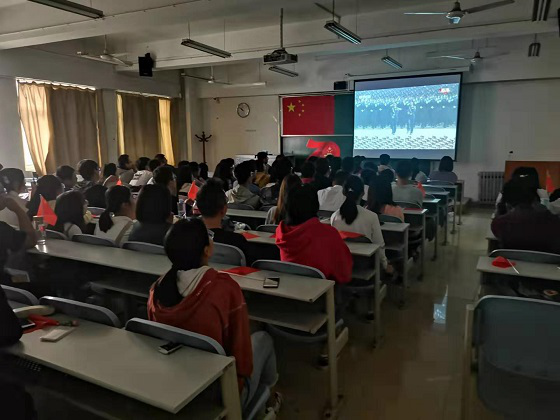 2019年10月1日上午10时,北京天安门广场隆重举行了庆祝中华人民共和国成立70周年大会。习近平总书记发表重要讲话:“中国的昨天已经写在人类的史册上,中国的今天正在亿万人民手中创造,中国的明天必将更加美好。全党全军全国各族人民要更加紧密地团结起来,不忘初心,牢记使命,继续把我们的人民共和国巩固好、发展好,继续为实现“两个一百年”奋斗目标、实现中华民族伟大复兴的中国梦而努力奋斗!”讲话结束后,举行了盛大的阅兵活动。美高梅娱乐场 党委组织部分教师代表和学生代表在美高梅娱乐场 资料室、教学楼A207教室集中观看了本次阅兵仪式。