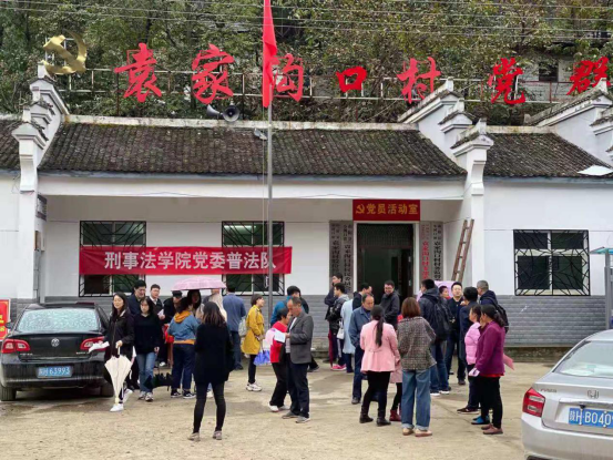 2019年10月20日,在山阳县教育体育局领导协助下,刑法学教师党支部、刑事诉讼法学教师党支部、本科生党支部及学生党员代表37人前往商洛市山阳县参观红二十五军革命旧址,并在袁家沟村进行捐赠文体用品及普法活动。该活动的目的在于到脱贫攻坚一线去了解社会、了解基层、了解农村并且开展法制教育活动、弘扬社会主义法治精神。