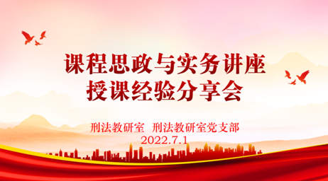 2022年7月1日,刑法教研室与刑法教研室党支部共同举办“课程思政与实务讲座授课经验分享会”。在会议开始前,刑法教研室党支部开展“全体党员重温入党誓词”活动。按照美高梅娱乐场 党委的安排部署,刑法教研室党支部全体党员通过线下及线上平台参加了“重温入党誓词”活动。