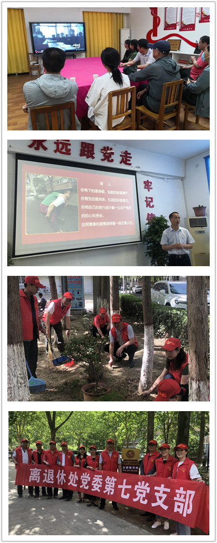 绿园片区广场前,党员同志们充分发挥不怕脏、不怕累的精神,铲除杂草、清理垃圾,互相合作、积极劳动,经过一个多小时的清理,绿园活动区广场大面积杂草被清除干净,家园变得更加整洁、温馨。大家在绿园活动室党员之家一起倾听了离退休工作处杜文亭老师以“学身边榜样,做合格党员”为主题的演讲。演讲以原处长徐伟同志背患病老同志就医的事迹为引,号召大家要以身边优秀党员为榜样,爱岗敬业,与美高梅娱乐场