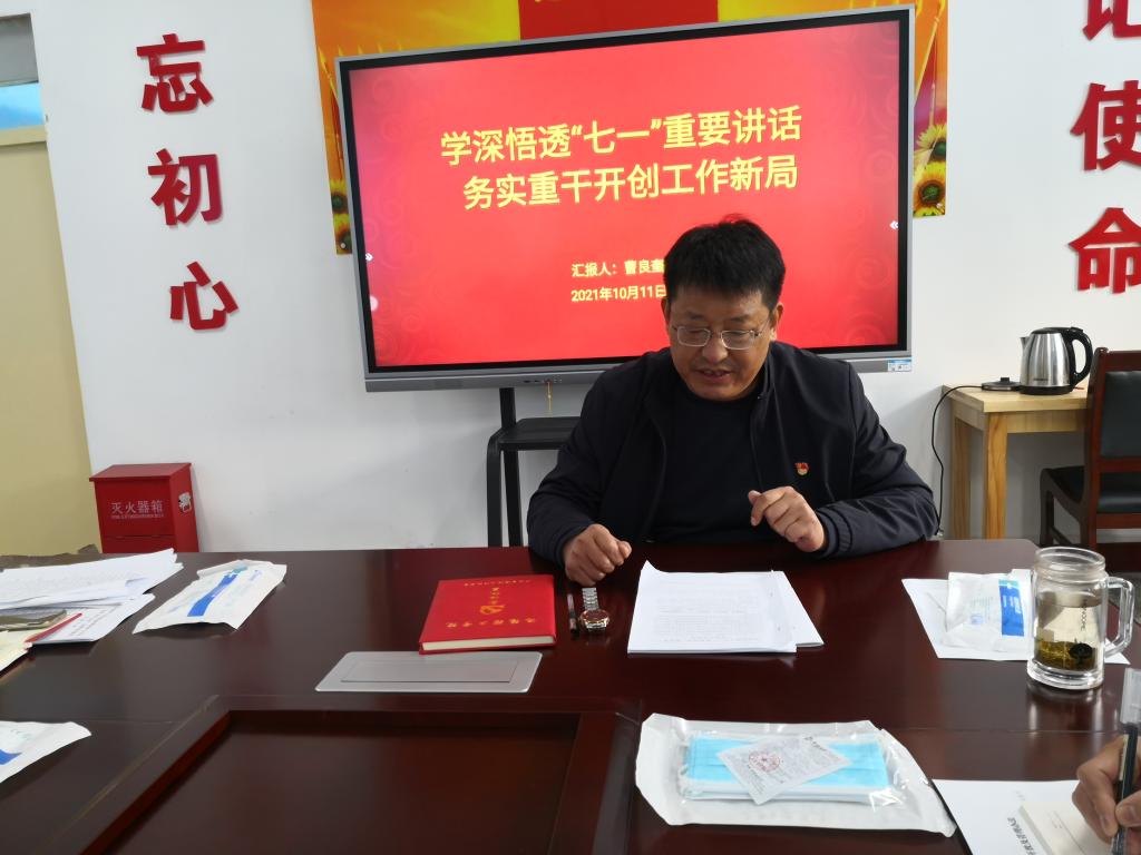 10月11日上午,离退休工作处党委第七党支部专题党课在珠江路党员之家举行。党支部书记曹良奎以《学深悟透“七一”重要讲话 务实重干开创工作新局》为题,就深入学习贯彻习近平总书记“七一”重要讲话精神进行专题辅导。党支部全体党员参加党课学习。
