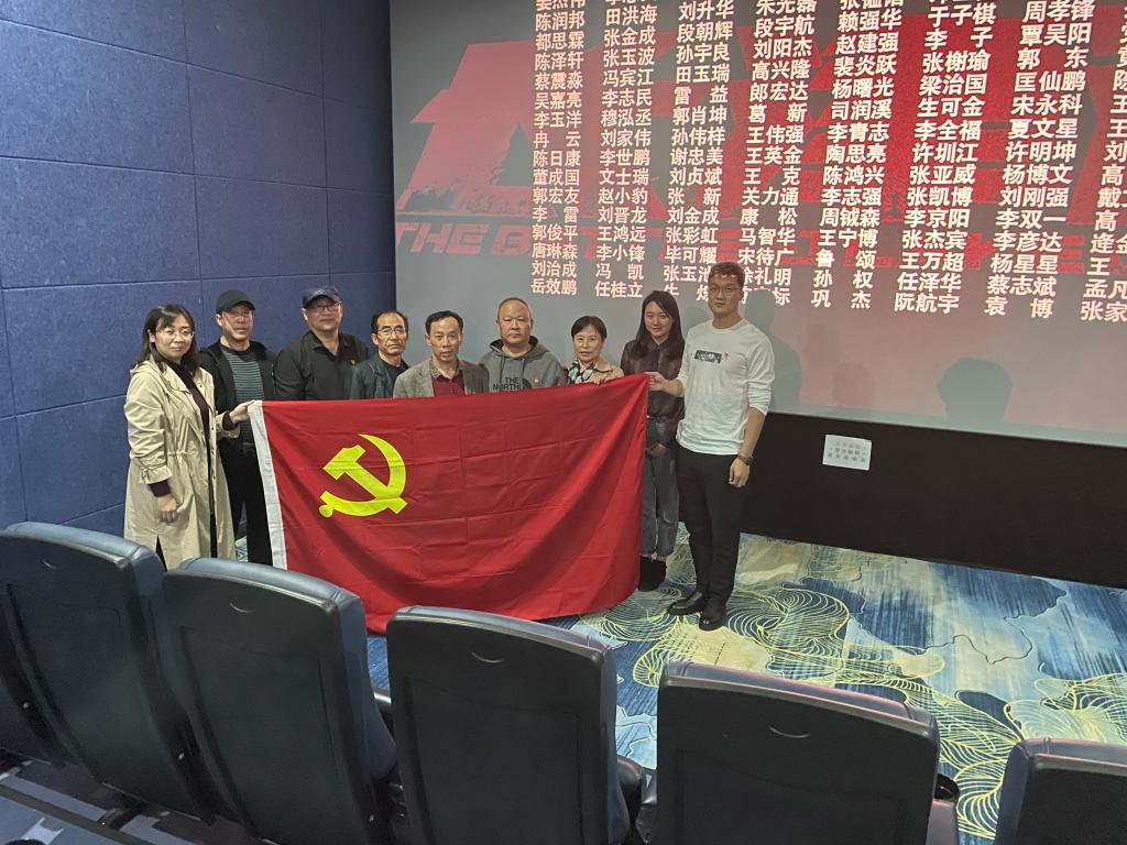 附近的电影院里,集体观看国庆献礼片——《长津湖》。影片《长津湖》以71年前抗美援朝中的长津湖战役为背景,讲述了以伍千里、伍万里为代表的第九军团第七穿插连将士们远赴朝鲜,在冰天雪地、敌众我寡、装备差距巨大的恶劣环境下奋勇杀敌的惨烈故事。