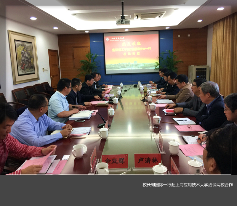 为贯彻落实河南省教育厅、上海市教委《教育合作协议》,促进共同发展, 10月15日-16日,校长刘国际、副校长王晓峰带领校办、组织部、发规处、教务处、科研处、学科建设处和人事处等职能部门负责人,赴上海应用技术大学开展全面合作交流洽谈。