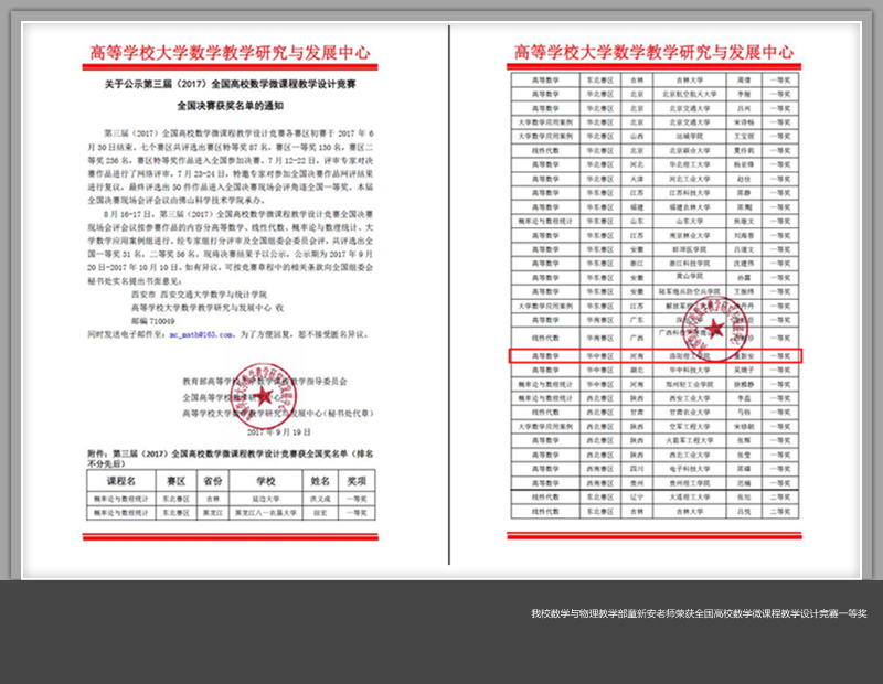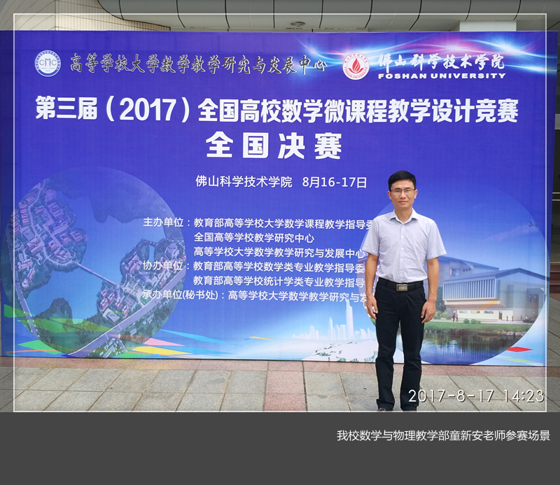 近日,第三届(2017)全国高校数学微课程教学设计竞赛成绩揭晓,美高梅娱乐场 数学与物理教学部童新安老师荣获全国一等奖。