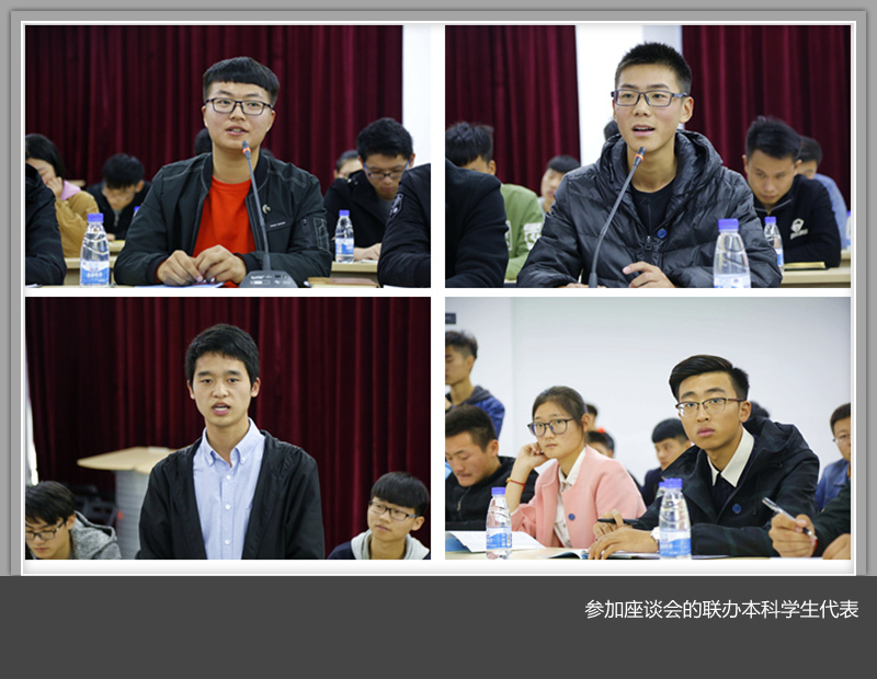 师生座谈会阶段,智能工程美高梅娱乐场 2017级自动化专业本科生刘帅炜、汽车工程美高梅娱乐场 2017级车辆工程专业马奇、机械工程美高梅娱乐场 2016级材料成型及控制工程专业陈厚振、2015级机械制造及其自动化专业陶杭等分别代表新老本科生发言,并就自己关心的英语四六级考试、考研、就业等问题,与现场领导老师进行了互动交流。