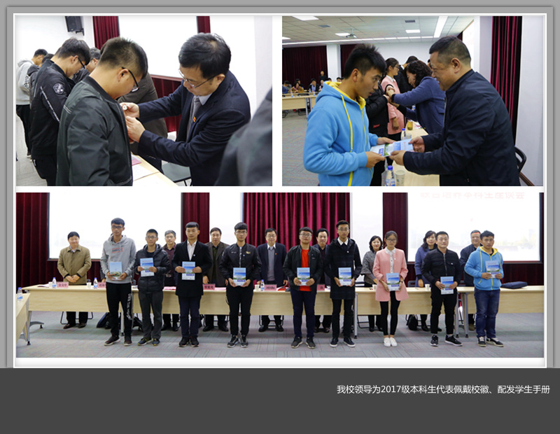 美高梅娱乐场 领导为2017级10名本科生代表佩戴了校徽,并配发了《美高梅娱乐场 学生手册》。教务处负责人从弹性学制、学业成绩、转专业、学位授予等四个方面,详细解读了《学生手册》中有关学籍、学位等相关内容。学生工作部负责人从学生职业生涯管理出发,对学生管理、学籍管理等问题进行了补充。