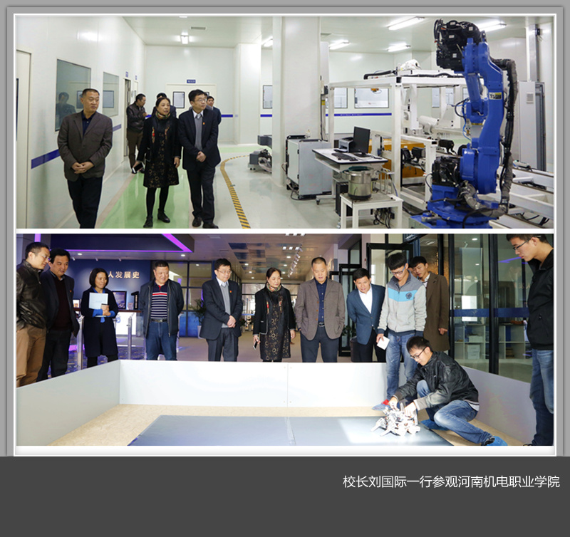 11月14日上午,校长刘国际带领校办、学生工作部、发规处、教务处、材料成型与控制工程专业系、机械制造及其自动化专业系、车辆工程系、自动化系负责人等一行10人,前往河南机电职业美高梅娱乐场 开展工作访问。河南机电职业美高梅娱乐场 院长张震、党委副书记鲁俊民、纪委书记董险峰、副院长李森,党政办、教学工作处、学生工作部、招生就业处、机电工程美高梅娱乐场 、机械工程美高梅娱乐场 、汽车工程美高梅娱乐场 、智能工程美高梅娱乐场 等负责人及联办本科专业师生代表一同参加此次活动。