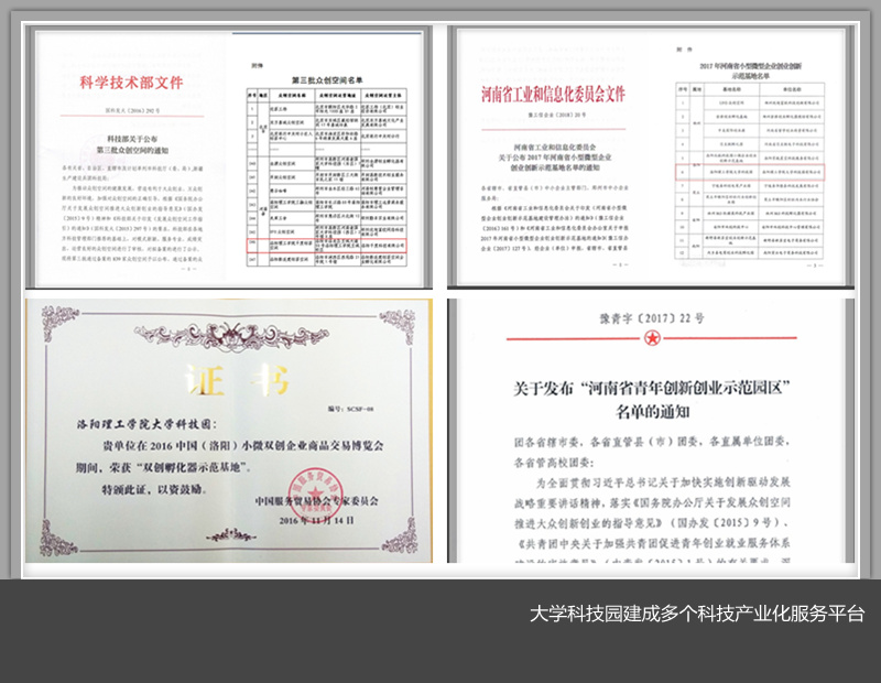 在重点项目方面,建成了“国家级众创空间”“河南省大学科技园”“河南省科技企业孵化器”“河南省青年创业创新示范园区”“洛阳大数据与深度智能应用研究中心”等12个科技产业化服务平台。与洛龙区政府共同举办了“2017洛阳大数据高峰论坛”。建成了市级“智能装备与机器人研教专业化众创空间”。重点项目一个接一个孵化,建设目标一个接一个落地,园区作为洛阳高校科技成果转移转化和创新创业、项目孵化高地的作用得到不断发挥。