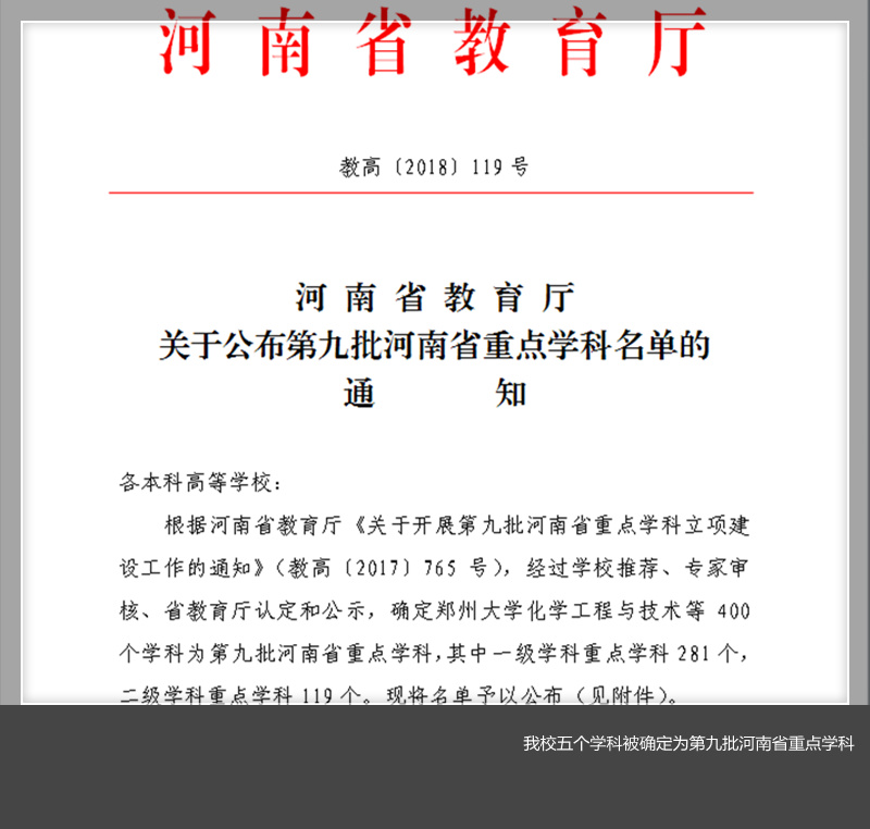 近日,河南省教育厅发布了《关于公布河南省第九批重点学科名单的通知》,美高梅娱乐场 材料学、岩土工程、控制理论与控制工程、机械设计制造及其自动化、中国古典文献学5个学科被确定为第九批河南省重点学科。