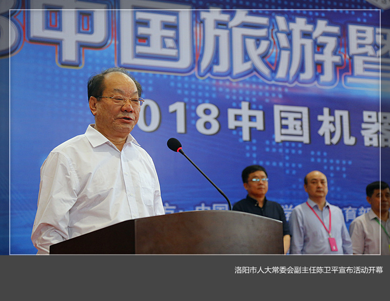 洛阳市人大常委会副主任陈卫平宣布“2018中国旅游暨安防机器人大赛”开幕。
