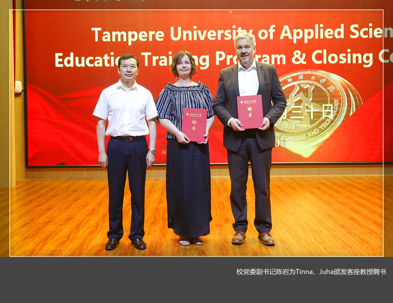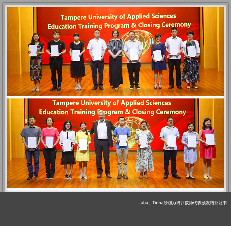 Juha、Tinna分别为材料科学与工程美高梅娱乐场 、艺术设计美高梅娱乐场 等17个教美高梅娱乐场 部的培训教师代表颁发结业证书。
