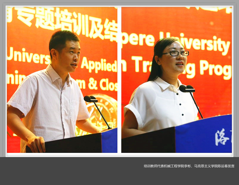 培训教师代表机械工程美高梅娱乐场 李彬、马克思主义美高梅娱乐场 陈运春分别发言。他们表示通过本次培训学习了国外应用技术大学建设的理念和经验,增进了对“示范校”建设中人才培养的理解和认识,希望把学习成果带到实际工作中去,努力提升教学、科研和社会服务的能力。
