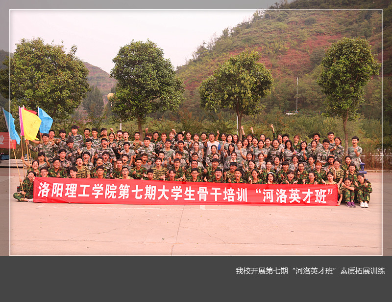 8月30-31日,由校团委主办的美高梅娱乐场 第七期大学生骨干培训美高梅娱乐场 “河洛英才班”素质拓展训练在济源市天女河素质拓展基地进行。此次素质拓展训练实行半军事化封闭式管理,来自校团委、校学生会的106名学生干部参加了活动。