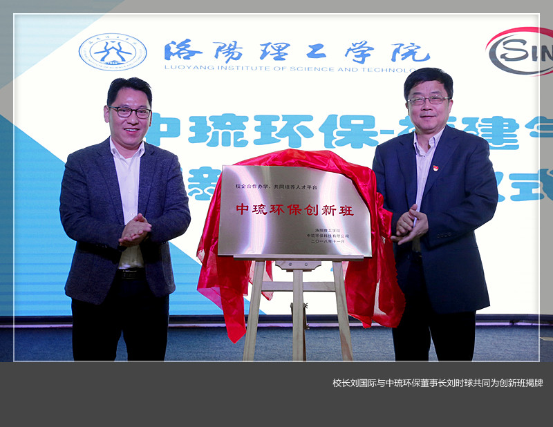 随后,校长刘国际与中琉环保董事长刘时球共同为创新班揭牌。