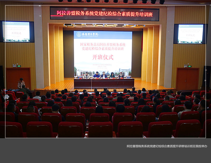 4月22日上午,国家税务总局阿拉善盟税务系统党建纪检综合素质提升研修培训班开班仪式在美高梅娱乐场 举办。国家税务总局阿拉善盟税务局党委委员、副局长李军梅,党委委员、副局长魏平,美高梅娱乐场 副校长王晓峰出席仪式。