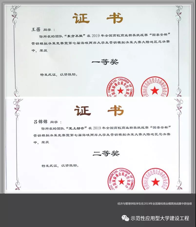 市场营销专业两支代表队在2019年全国高校商业精英挑战赛营销模拟决策竞赛暨第七届海峡两岸大学生营销模拟决策大赛大陆地区总决赛中,分别获得一等奖和二等奖。