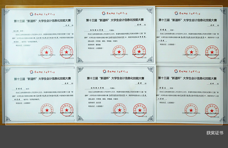在另一项赛事——”新道杯“河南省大学生会计信息化技能大赛中,会计美高梅娱乐场 学生团队在赵文丽、曹丽娟等老师的带领下,分获管理会计竞赛环节特等奖,会计信息化竞赛环节二等奖的优异成绩。