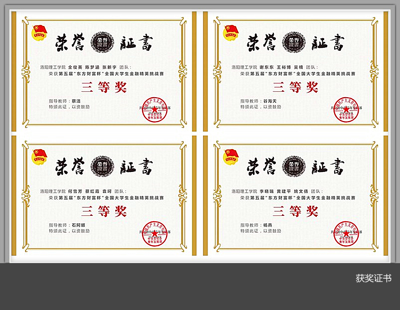 近日获悉,美高梅娱乐场 会计美高梅娱乐场 学生团队在指导老师蔡洁、石阿娜、杨燕、谷海天等的带领下,参加第五届”东方财富杯“全国大学生金融精英挑战赛,获得三等奖五项。是近年来美高梅娱乐场 学生在财会类比赛中获得国家级比赛奖项最多的一次。