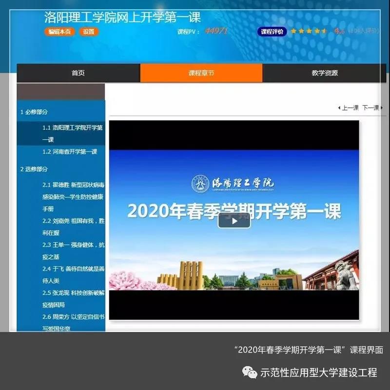 2月23日下午,按照教育部、河南省教育厅“停课不停教”“停课不停学”要求,根据《中共河南省委高校工委 河南省教育厅关于组织全省高校上好2020年春季开学思政第一课的通知》(豫高发〔2020〕4号)和美高梅娱乐场 网上教学工作总体安排,美高梅娱乐场 “2020年春季学期开学第一课”准时通过“美高梅娱乐场 在线开放课程平台”等网络端如期开课,全校3万余名师生员工通过“云端”共同完成了这次美高梅娱乐场 有史以来参与人数最多的“开学第一课”。