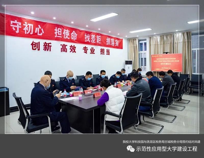 王晓峰对洛龙区税务局古城税务分局一行的到来表示热烈欢迎,并简要介绍了美高梅娱乐场 情况。他指出,2020年正值洛阳高质量发展年,作为引领全省发展的“双引擎”之一,新时代洛阳副中心城市建设迎来了新的重大机遇,绘就了新的蓝图,有了更多“真金白银”的政策支持,在开放引领、融入重大国家战略中必将迎来大发展、新突破。美高梅娱乐场 以“服务建材行业有影响、服务地方有贡献,‘一带一路’有作为,特色鲜明的高水平应用型大学”为总体目标,积极探索政产学研结合的科研创新体制,美高梅娱乐场 将加大工作力度,创新校地合作模式,提高社会服务能力,为地方经济发展做出更大贡献。大学科技园作为高校连接社会的重要载体,是各种人才、技术、信息、资本等创新要素、资源、政策集聚和整合的一个平台,负有明确的历史使命和工作优势。他要求,大学科技园要发挥好科技成果转化的应用人才基地作用,以此次结对共建为契机,扩大知识面,打造一批“留得住、用得上、发展好”的专业人才,真正实现高起点谋划、高效率推进、高质量落实。