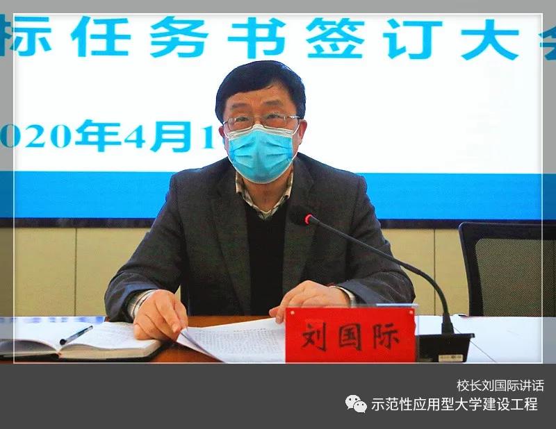 校党委书记陈岩、校长刘国际分别与材料科学与工程美高梅娱乐场 等3个教学单位,教务处等3个非教学单位代表现场签订目标任务书。机械工程美高梅娱乐场 代表教学单位、人事处代表非教学单位做了表态发言。